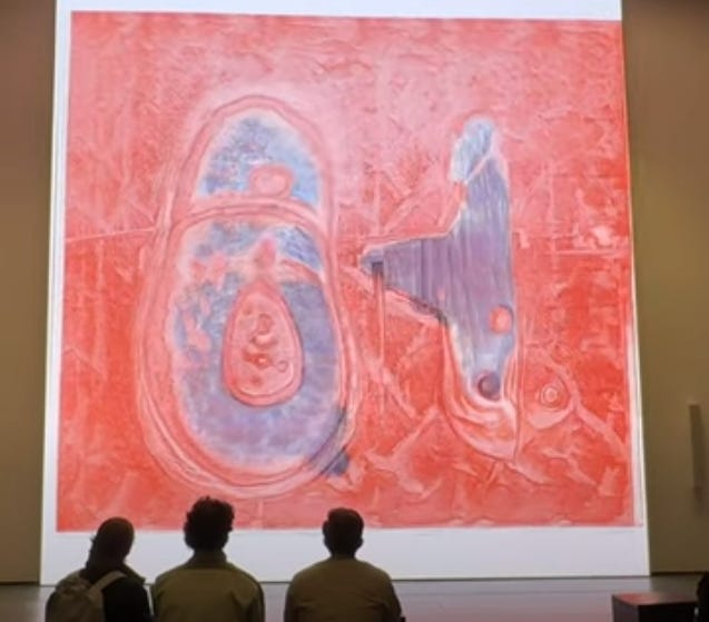 Anadol does other stuff with this - the animation pace, response, colors etc, claim to be effected by activity around it. I don’t have much critical to say about the piece, as I haven’t seen it installed in the MOMA. If any of my response reads as criticism, take note that I’m just explaining how it works - if that comes off as criticism, then there’s something very weird going on with the AI art world.