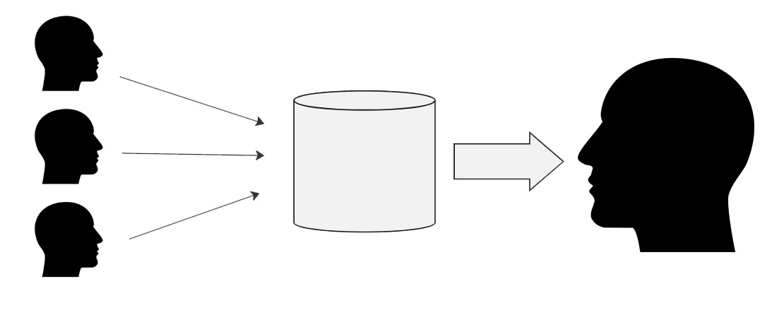 - Many to One: The many authors contributing to public discourse online: 100 blog posts about the best cheese. The “one” here refers to the companies that serve as “audience” to that data, though typically these data centers aren’t understanding or moderating these messages in any way aside from pure data analysis.