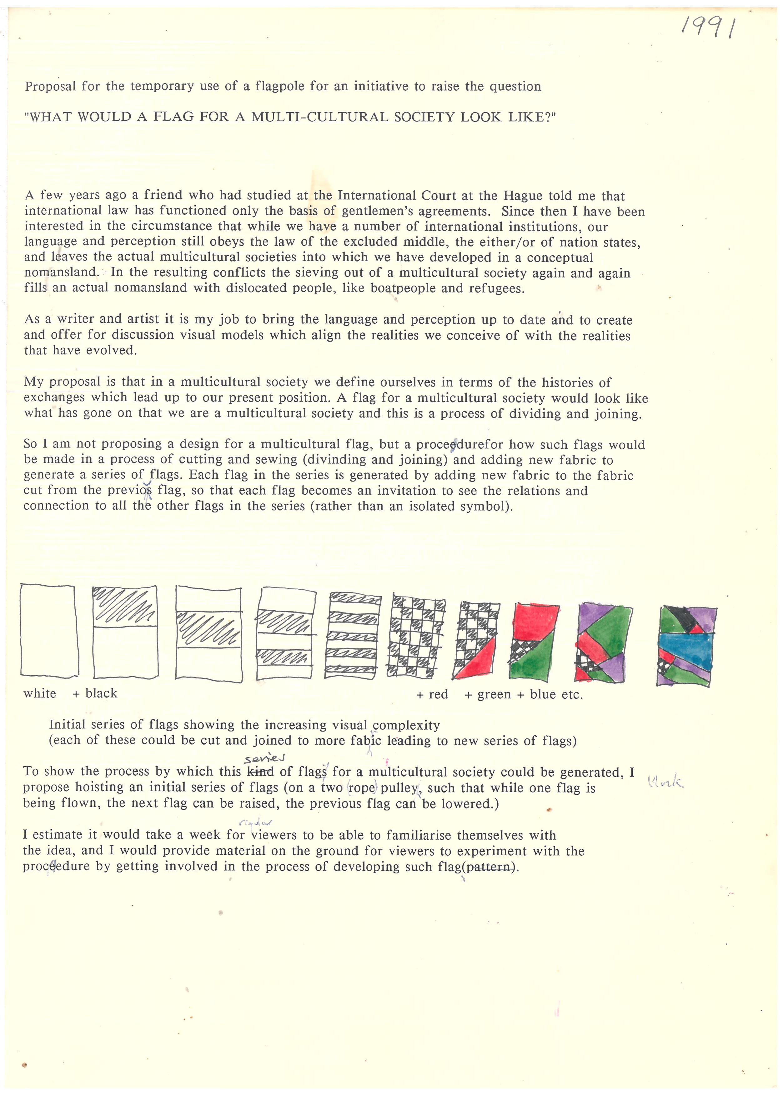 Likewise, she created a community feedback process intended to develop a series of multicultural flags in 1991.