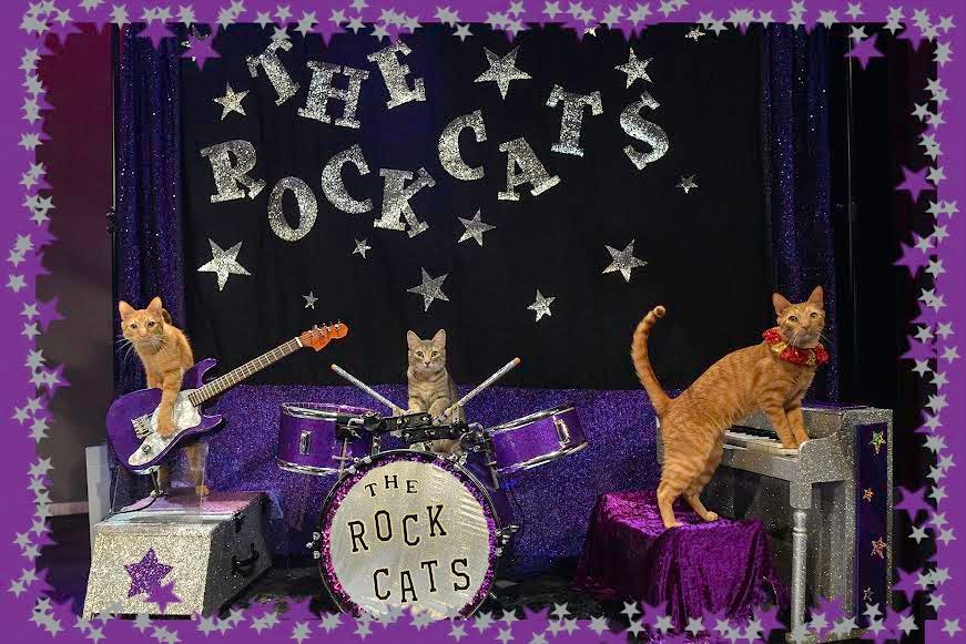 Some years ago in Portland, Maine I attended a performance of cats playing rock music. The Rock-Cats were a touring company in a small church theater downtown. There were several instruments on the stage — I recall a guitar, keyboard and drum set — with special modifications to make it easier for cats to perform them. Each cat was brought on stage one by one for a small solo showing off their talents, some of which were acrobatic feats.