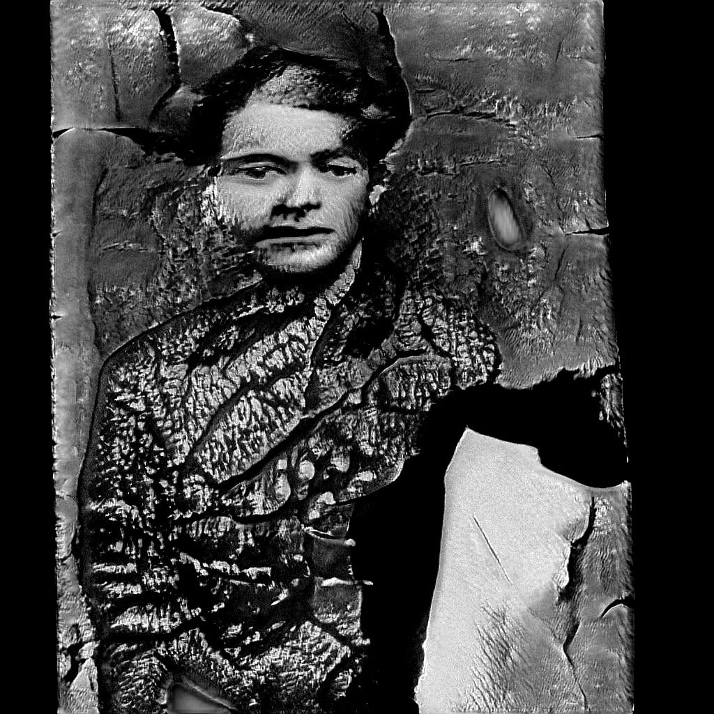 Years ago I worked with GANs to create something called the Costică Acsinte dataset. I created a dataset from the hundreds of public domain images taken by the 19th century Romanian portrait photographer, Costică Acsinte. Ascinte's work had deteriorated over time. They are torn, moldy, some are burned.