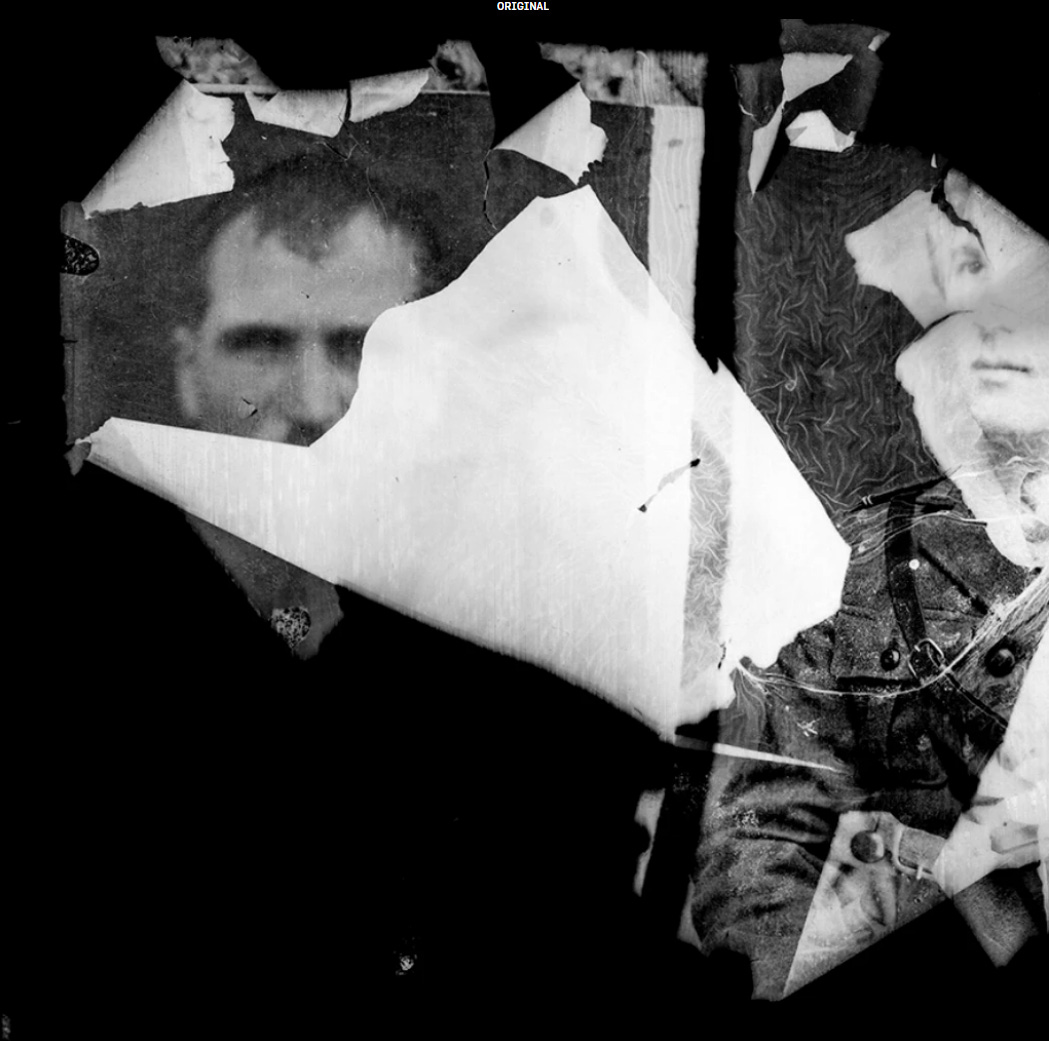 But the repair is not accurate. Like the ghosts in spirit photography, the repair of an image lost to noise or decay will always be an illusion. The image above is a “completion” of the photograph based on what DALLE2 sees. It isn’t applying its studious notes on digital decay to recreate something. It’s using it to guess. The mistakes we make in our dealings with AI are mistaking the machines guesses for facts, or truth, or purpose.