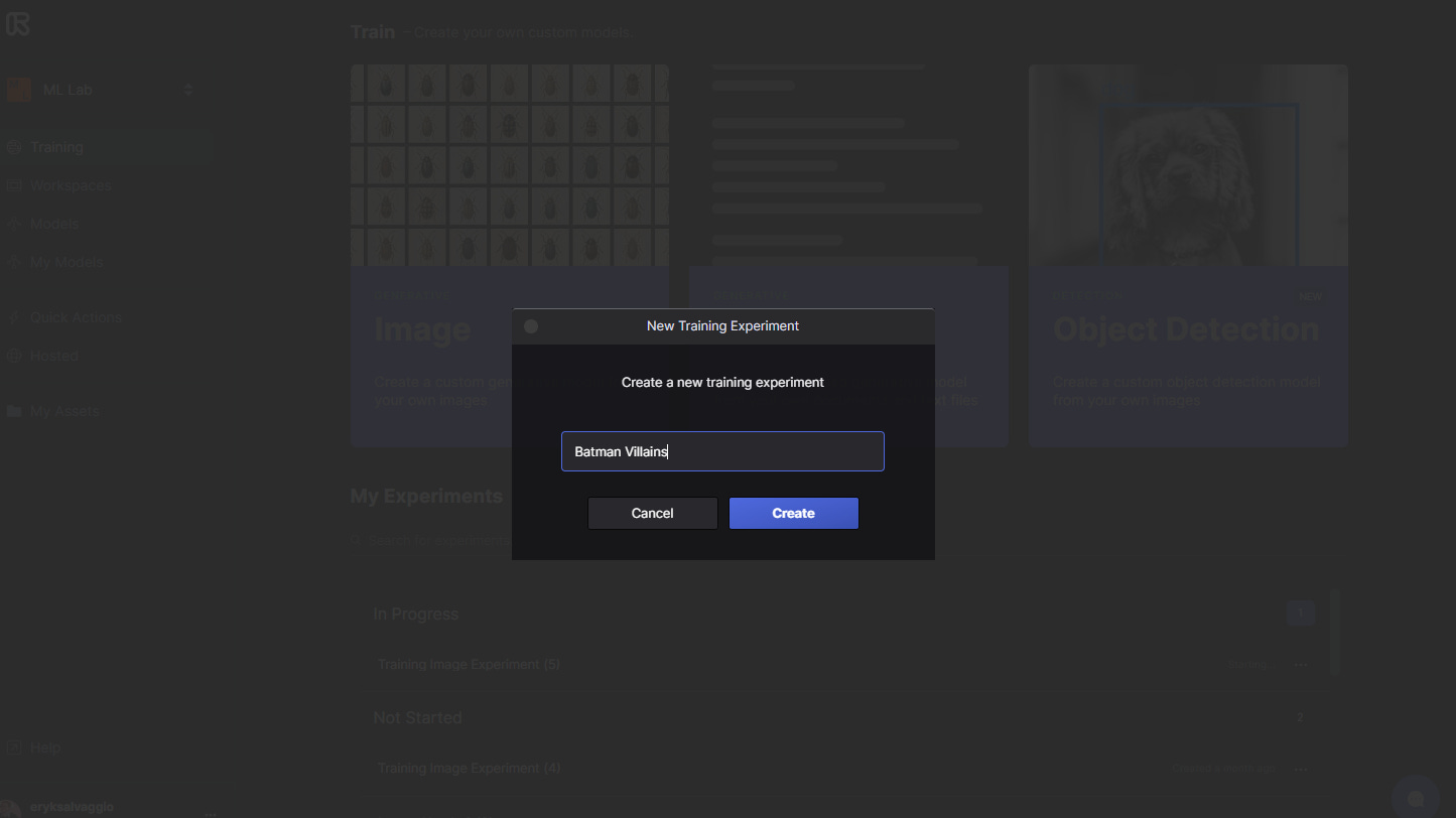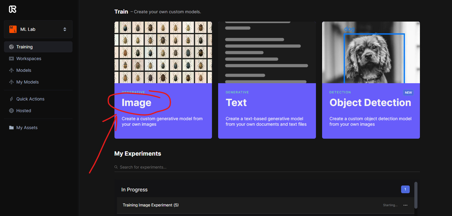 Here are some specific instructions. Put all of your training images into a Zip file. Once you are in RunwayML, you will look for the ML Lab, then choosing Training as an option on the right menu sidebar. Then click Image at the top of the new window. Then select New Experiment (name it) and upload your image folder. Upload the folder, then click Next. Then select Advanced and choose Faces. Faces gives you StyleGAN2, which is the highest resolution pre-trained model that you can build on. In the end, it’s going to look like whatever you trained it on most recently.