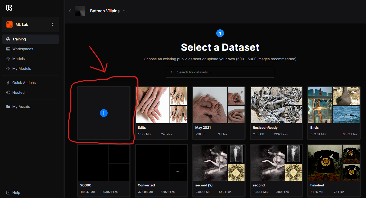 Once you get at least 500 images, it’s time to go home and open Photoshop or another image editing program of your choice. Ideally, it can do image macros. The AI needs the photos to be square shaped, 1024 x 1024 pixels wide. You can do this by putting all of the images in a folder, then recording a macro command. That’s basically like a video recording of the choices you make about how to edit the image. Except, instead of watching that video later, your photo imaging software does the thing you recorded. Automation means you can crop 500 images down to a square format 1024 x 1024 pixel image set as a batch instead of doing them one by one.