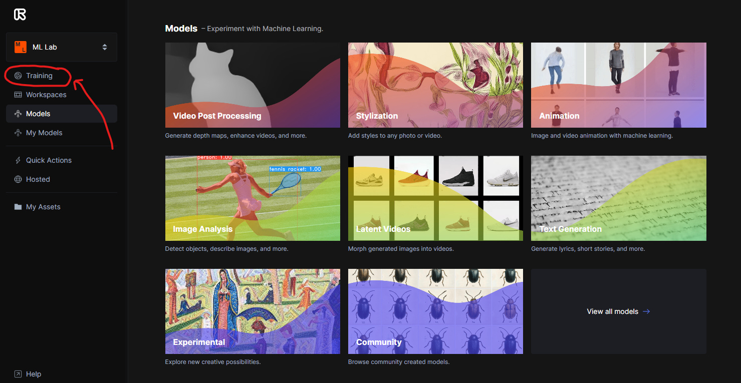 Once you have as many images as you can make, you can train the model. I use a shortcut here. There are a number of tools out there you can use for this, from Google Collab Notebooks to GitHub repositories to standalone software. For students, I like to use RunwayML, because you can push buttons to do things. Runway will let you see models that have already been trained, and you can take these models and continue to train them with your own dataset of images. To distinguish between training a model from scratch (which requires many more than 1500 images) I refer to this as priming the model: giving it enough recent data to bias the output toward these new images. That way, the model remembers what it has learned before, so you don’t have to train it from nothing. The compromise is that you will have residue of the old model come up from time to time.