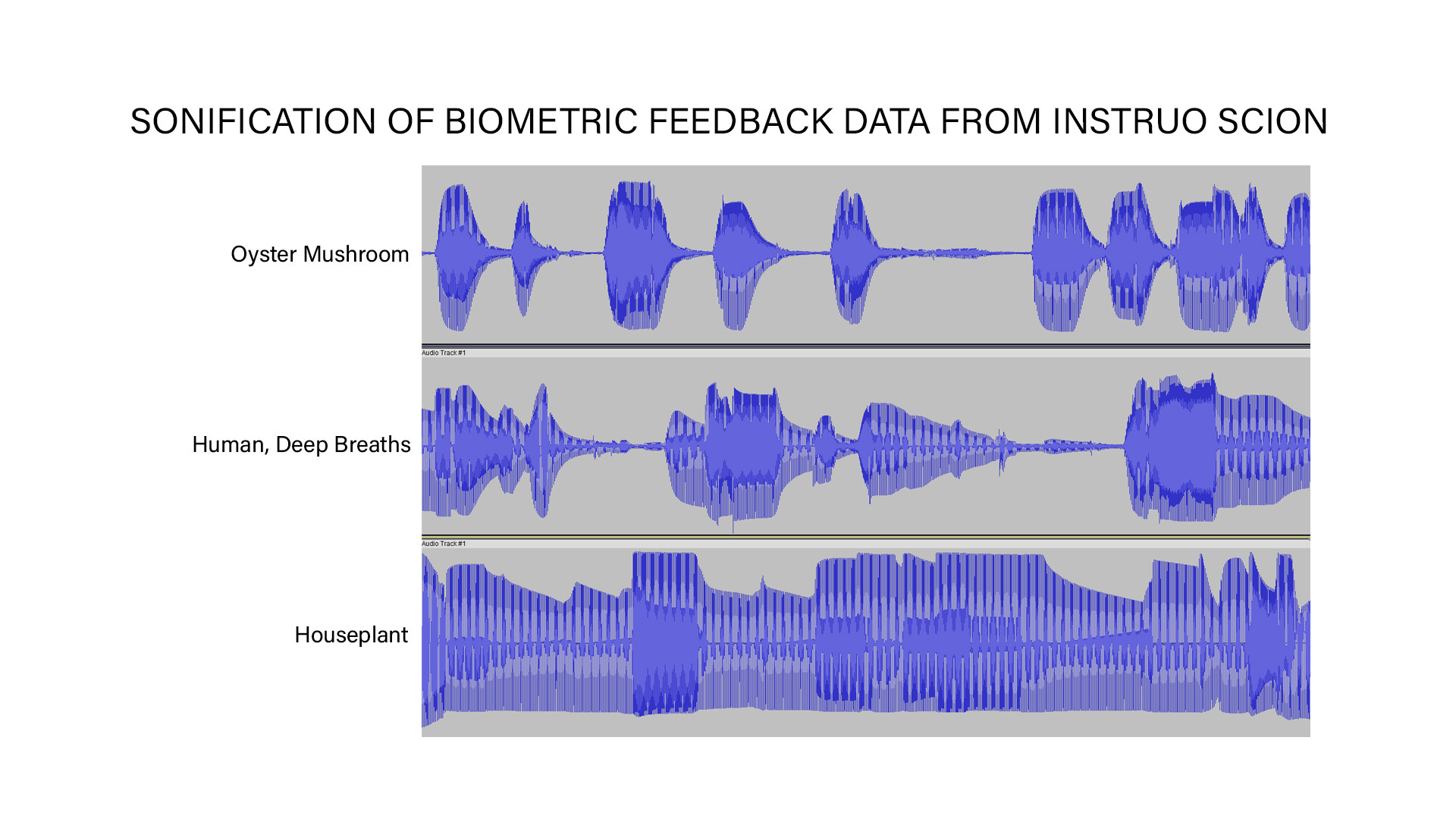 What was unusual about the situation was only the sonification of that response. Sentience became accessible. The mushroom was controlling an electronic device and that device happened to communicate with me. And this speaks to this idea of the “musical instrument” as a tool that changes our relationship with what we observe, just as all of our visual apparatus and scientific instruments have done before it. There is a bolder, more visceral presence of mushroom activity when it is being performed as a musical hum that begins to crackle with electric distortion. It changes from a mushroom “mushrooming around” in imperceptible slow-motion to a living being that I co-exist and interact with.