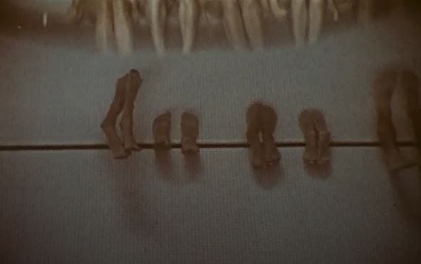 Other products of this lab were, on the whole, a bit dull, reflecting a very minor break from chalk-and-talk pedagogy, though delivered in clear, jargon-free and accessible language. But even they had moments of strange, surrealist flare, like this image of legs filmed underwater, which soon starts kicking to show the effect of motion on perception.