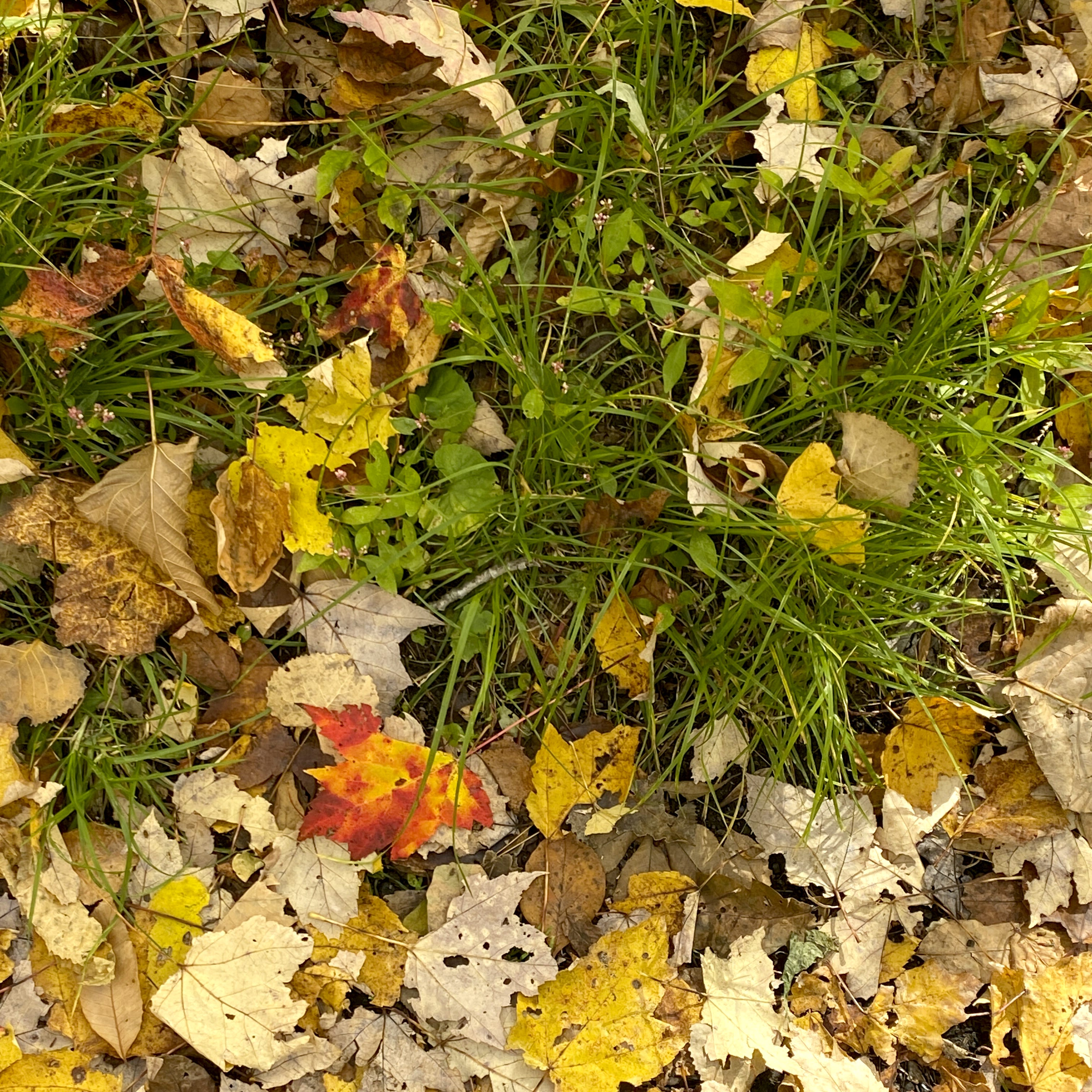 So, you seek continuities of patterns between each shot, with variations in composition. You want to balance similar proportions of the elements within the frame. You aim to balance the splashes of Apple-red maple leaves, patches of grass, and bursts of purple wildflowers, without introducing particulars.