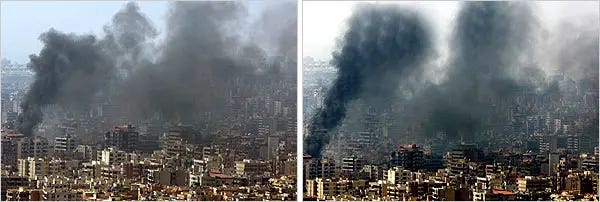 Reuters photographer Adnan Hajj used the photoshop clone stamp tool to create and darken additional plumes of smoke. He submitted images where he copied and pasted fighter jets and added missile trails. Hajj has maintained that he was merely cleaning dust from the images. I don’t know Hajj’s motives. I can say that I have cleaned dust from images and it never introduced a fighter jet.