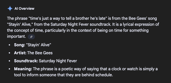 Anyway, the line is definitely not from "Stayin' Alive," and that is a wild interpretation of the themes of that song.