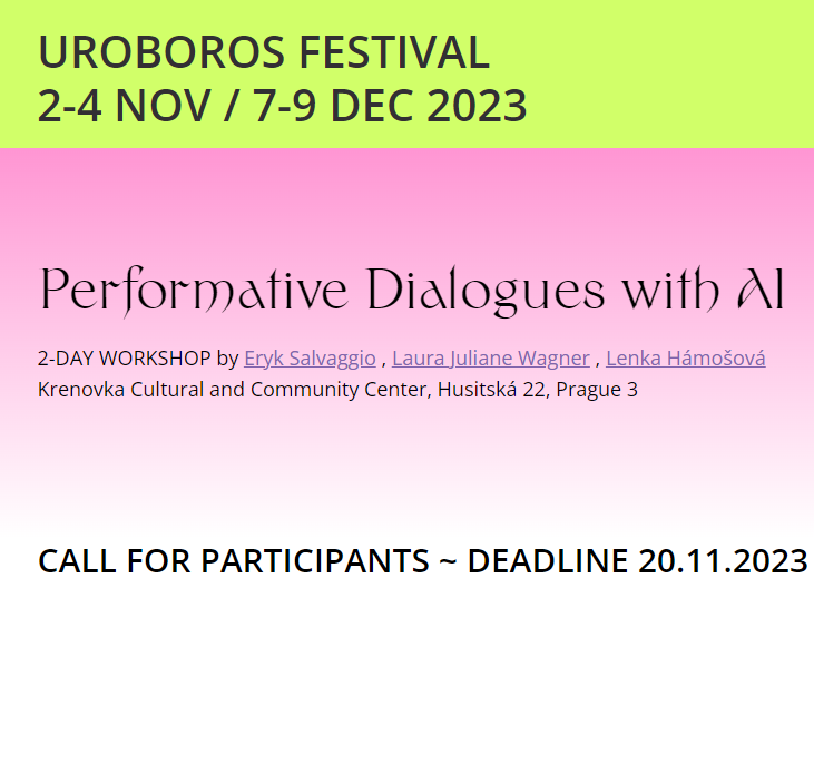I will be at the Uroboros festival in Prague running a workshop for “Models for Making Distance” and talking about algorithmic resistance. It’s a small space and registrations are, I think, closed. But if you’re in Prague and want to connect at the festival, I will be in the city for the duration and then some, eating as much smažený sýr as possible. (Maybe you can still register, I don’t know).